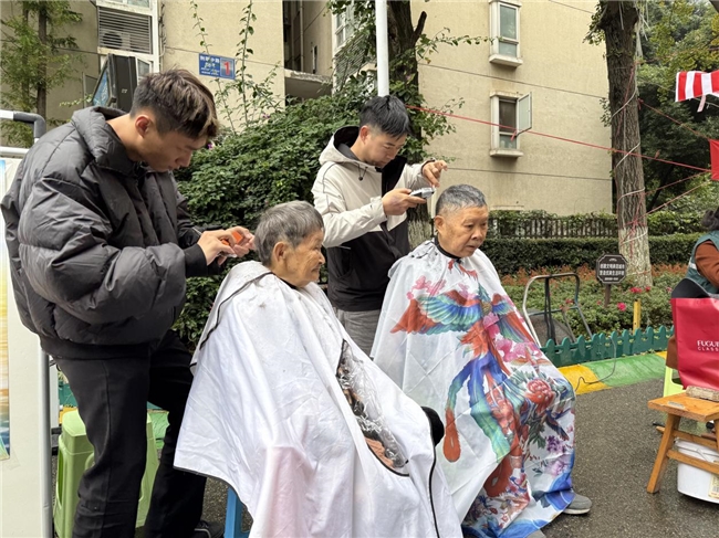 上午九点半,生存集在欢声笑语中准时“开市”。现场分区清晰,业务多样:义诊摊位前,医生耐心为居民测量血压解答居民咨询医疗用药难题;磨刀师傅的摊位人气十足,“嚓嚓”的磨刀声不绝于耳;南山美发爱心态发师技艺娴熟,让老人们精神焕发;免费手机贴膜摊位刚支起来没多久,就被闻讯而来的居民围得水泄不通,小区的手工达人手艺娴熟,贴膜整个流程不过几十秒,一张严丝合缝的贴膜就贴好了。缝补衣服、小电器维修等摊位也围满了居民。微网格员和党员志愿者们穿梭其中,引导秩序,协助沟通,整个现场井然有序又温情满满。